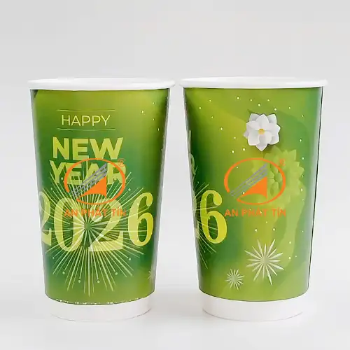 - Sản phẩm: Ly giấy 18oz 2 lớp Happy New Year xanh